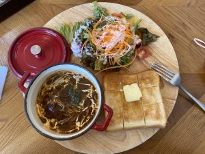 私は煮込みデミグラスハンバーグのプレートを頼みました!