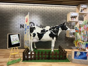 入口はいって正面に牛さんがドーン😲