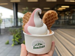 カフェスペースを見つけたので、早速ソフトクリームを食べました♪