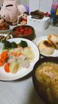 テーブルには、シチューだけでなく色とりどりのおかずが並んでいてびっくり。