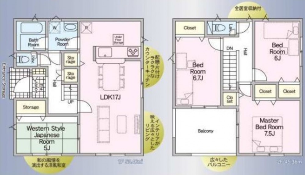 - システムキッチン、カウンターキッチン、IHクッキングヒーター、オール電化、シャンプードレッサー、洗浄便座、浴室乾燥機、複層ガラス、モニタ付インターホン、床下収納、トイレ2箇所