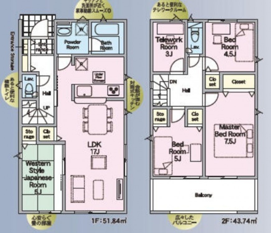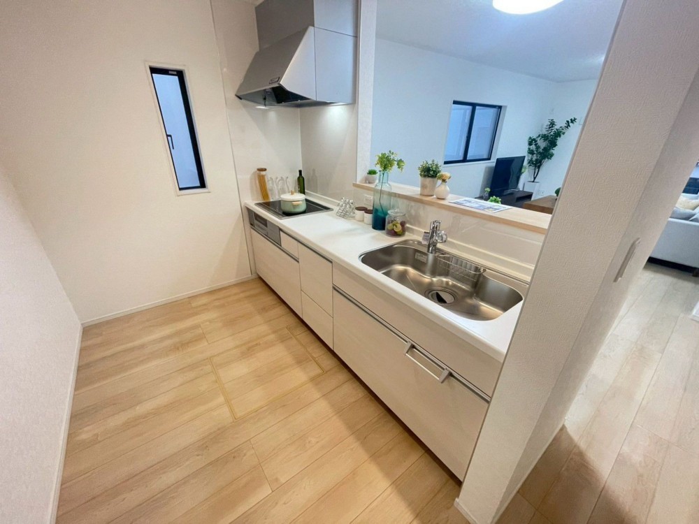 - システムキッチン、カウンターキッチン、IHクッキングヒーター、オール電化、洗浄便座、浴室乾燥機、複層ガラス、モニタ付インターホン、駐車場2台分、駐車場3台分、床下収納、トイレ2箇所
