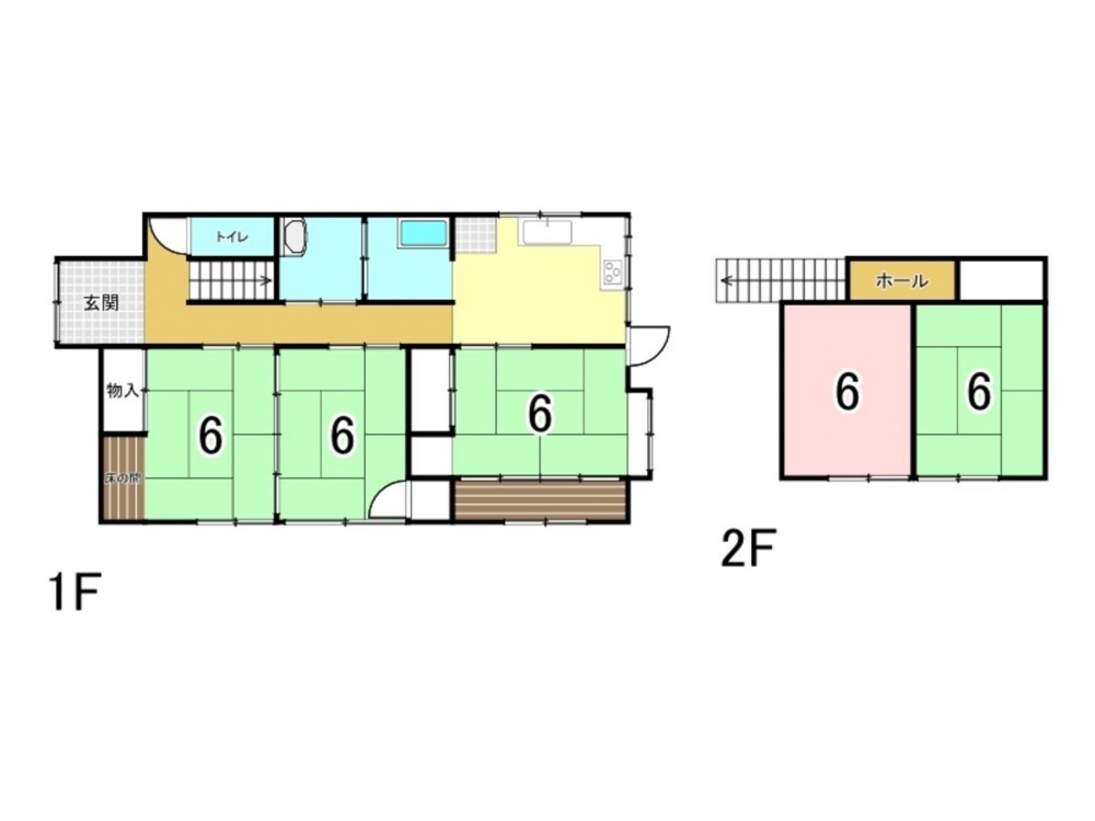 昭和53年築の2階建・5DK。和室を含むゆったりした間取りで、家族構成に合わせたリフォームが可能です。