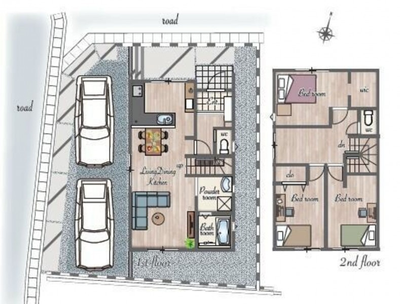 角地に位置し、開放感と通風性に恵まれた立地です。