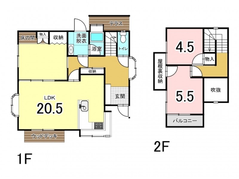 - モニタ付インターホン、駐車場2台分、床下収納、ウッドデッキあり